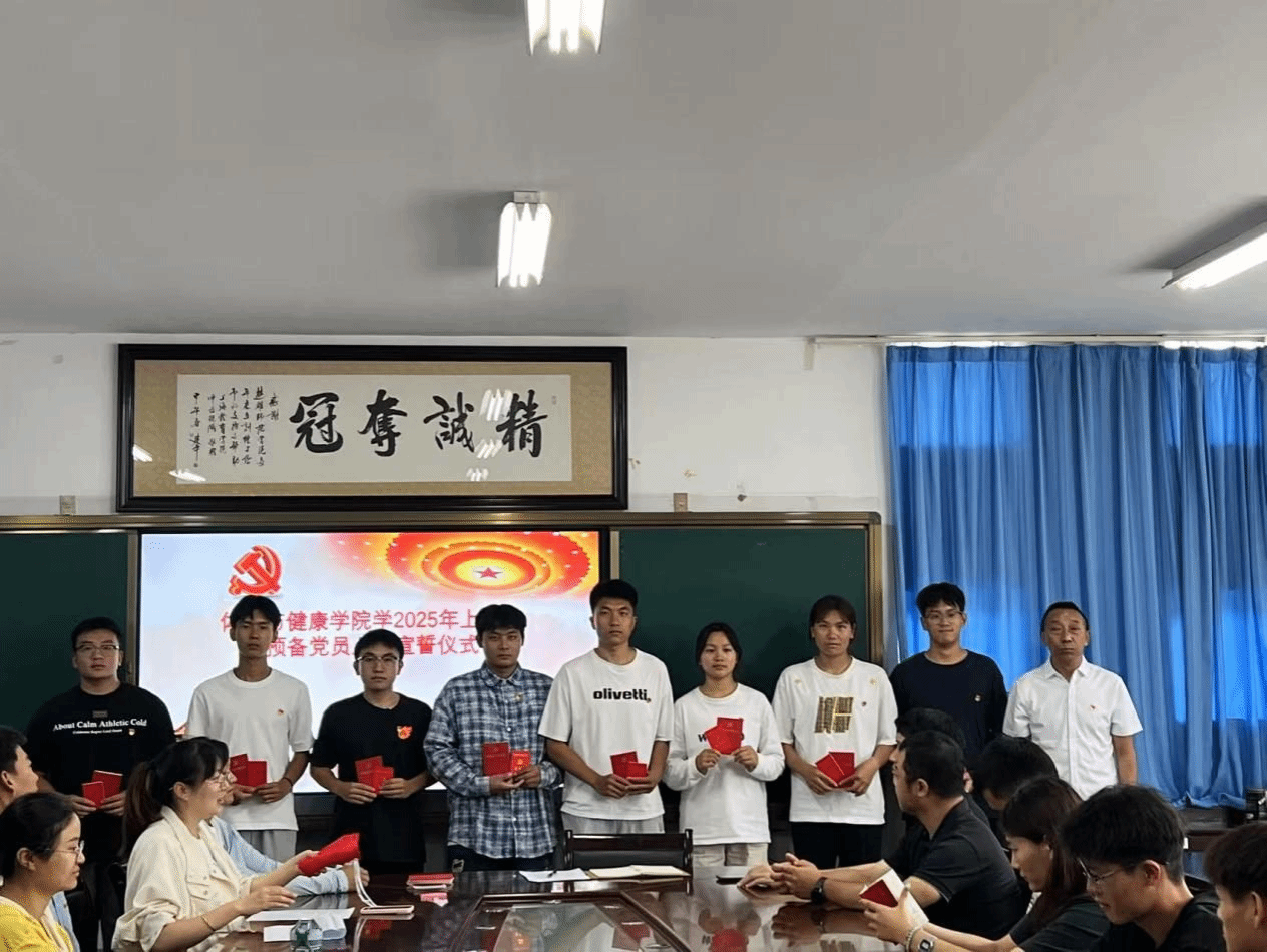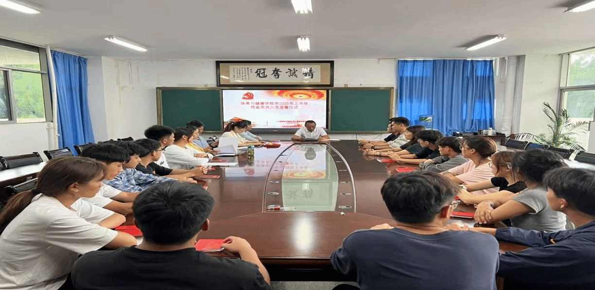 2025年7月1日下午,体育与健康学院学生第一,第二党支部在笃学楼122教室举行预备党员入党宣誓仪式,体育与健康学院党委书记袁宏刚、学生党支部书记李莉、毕永丽及全体学生党员参加了会议。会议由体育与健康学院学生第一党支部书记李莉同志主持。