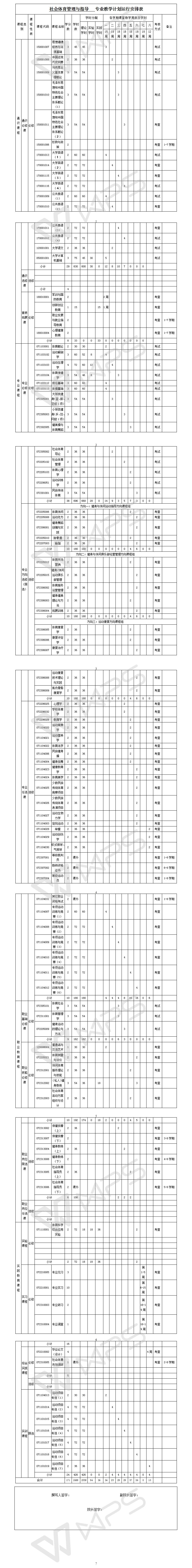 社会体育管理与指导专业教学计划运行安排表