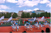 随后,啦啦操的同学们散开,随着欢快激情的音乐响起,全场啦啦操选手们随之律动,运动会比赛项目正式拉开帷幕。