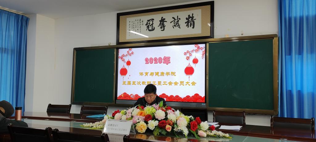 因学校第六轮中层干部轮岗,学院领导班子还未配齐,大会由学院党委王建中书记主持。王建中书记首先宣读了学校工会《对体健学院五届五次教职工暨工会会员大会请示的批复》。